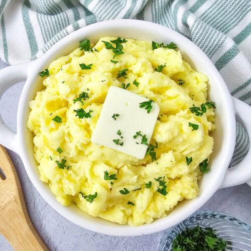 Garlic Parmesan Mashed Potatoes are a rich and creamy twist on classic mashed potatoes.