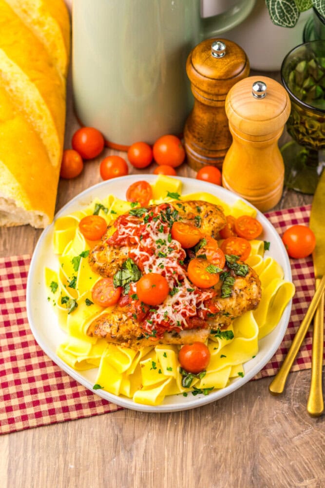 - Over pasta: Spoon the chicken and sauce over cooked pasta for a hearty meal.