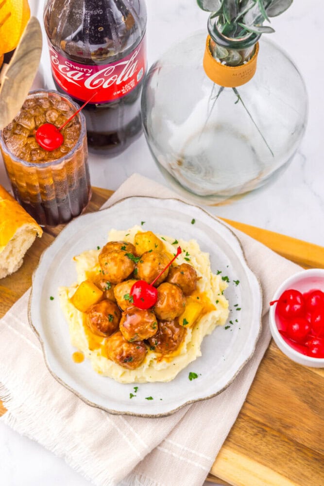 Slow Cooker Cherry Cola Pineapple BBQ Meatballs