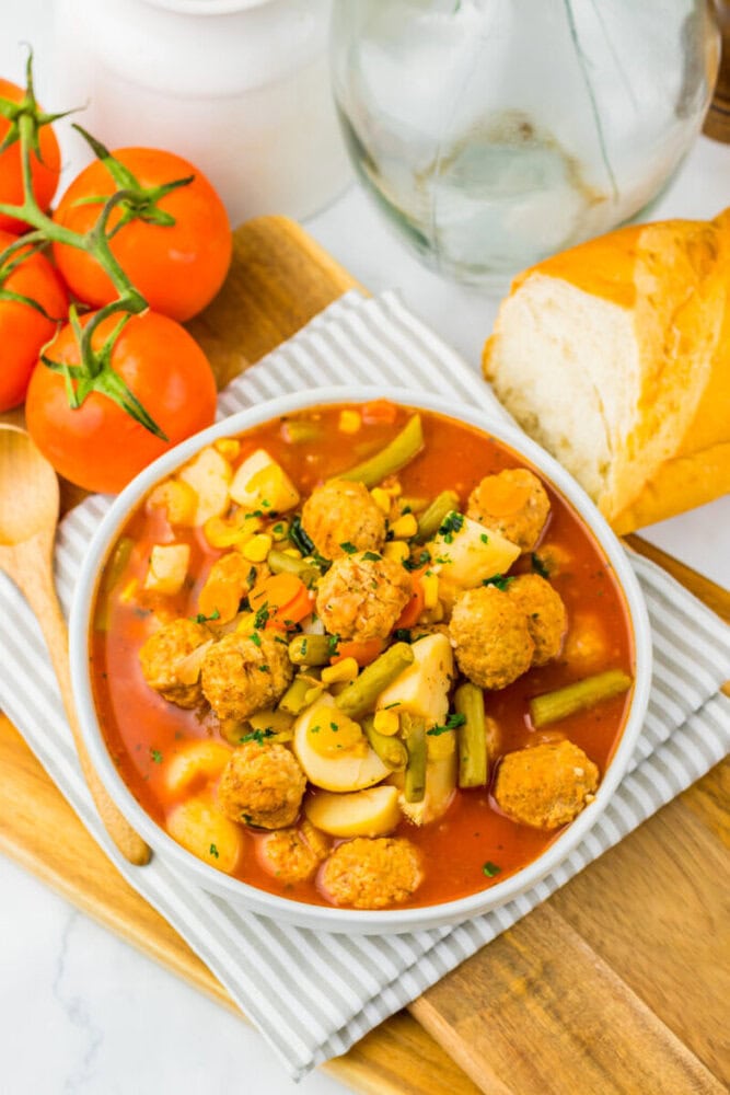 - Hearty and filling: Potatoes vegetables and meatballs make this soup satisfying enough to stand on its own.